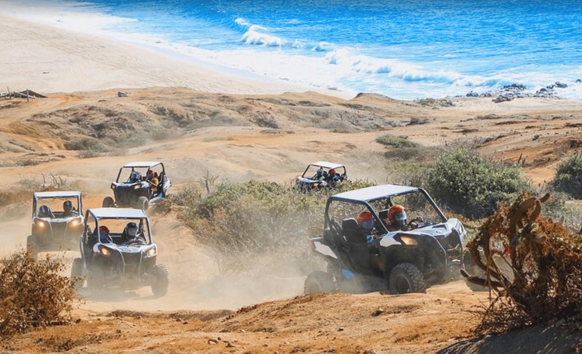 Embark on a unique and exhilarating journey with Cactus Tours' Camel and RZR Combo tour. This one-of-a-kind adventure allows you to explore the stunning landscapes of Baja California Sur in two exciting ways. Start your journey with a scenic camel ride along the pristine beaches, where you can soak in the breathtaking ocean views and feel the gentle breeze. Then, switch gears and hop into a high-performance RZR to navigate through rugged terrains, including sandy dunes, rocky trails, and lush oases. With experienced guides ensuring your safety and enjoyment, this combo tour promises an unforgettable experience filled with diverse landscapes and thrilling activities. Book your Camel and RZR Combo tour with Cactus Tours today and discover the beauty and excitement of Cabo San Lucas like never before!